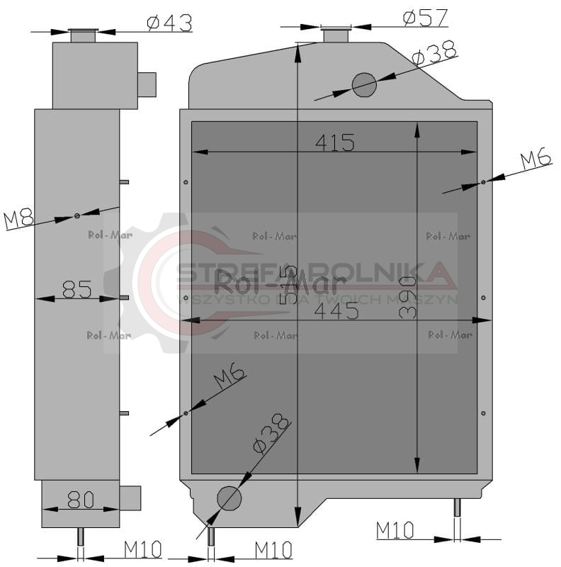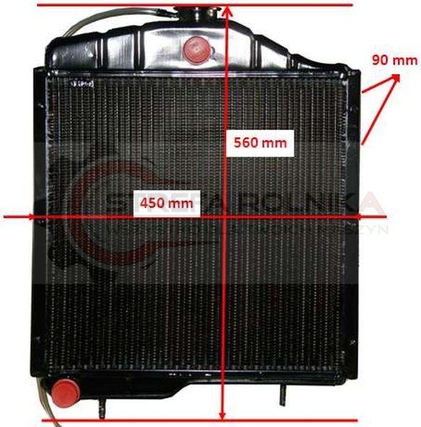 Parametry techniczne: Wysokość: 560 mm (od śruby mocującej do korka) Szerokość: 450 mm Grubość: 90 mm Średnica przewodów: O 32 mm - wykonana w całości z miedzi (oprócz mocowań) - zwiększona zdolność odprowadzania ciepła - odporna na korozję