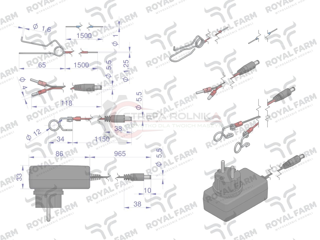 Elektryzator 1J bateryjno-sieciowy (uniwersalny) RF-1000 z zasilaczem ROYAL FARM