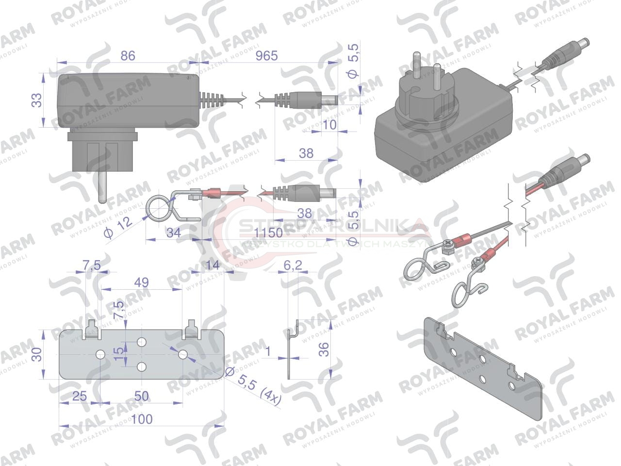 Elektryzator 2J bateryjno-sieciowy (uniwersalny) RF-2000 z zasilaczem ROYAL FARM