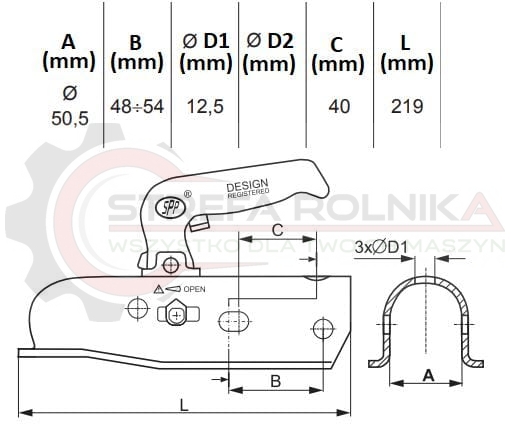 Głowica zaczepowa BC-2300C zastosowanie przyczepka SPP DMC=2300kg Masa pionowa nałożona na sprzęg- 200kg