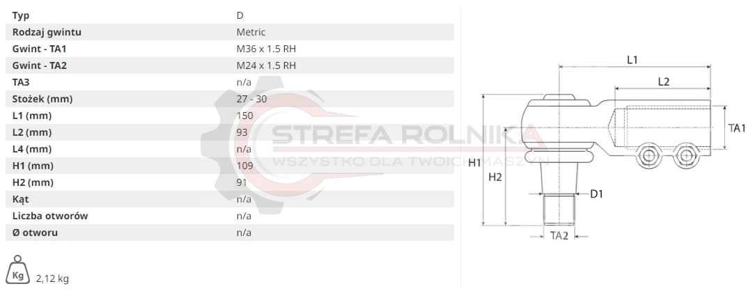 KOŃCÓWKA DRĄŻKA CASE 1046, 946, 1255, 1455, 553, 654, 724, 824 01295620, 1390430713, 1927245ZP, 3134240R91, 3134240R92, 3138344, 3140943, 3140943R1