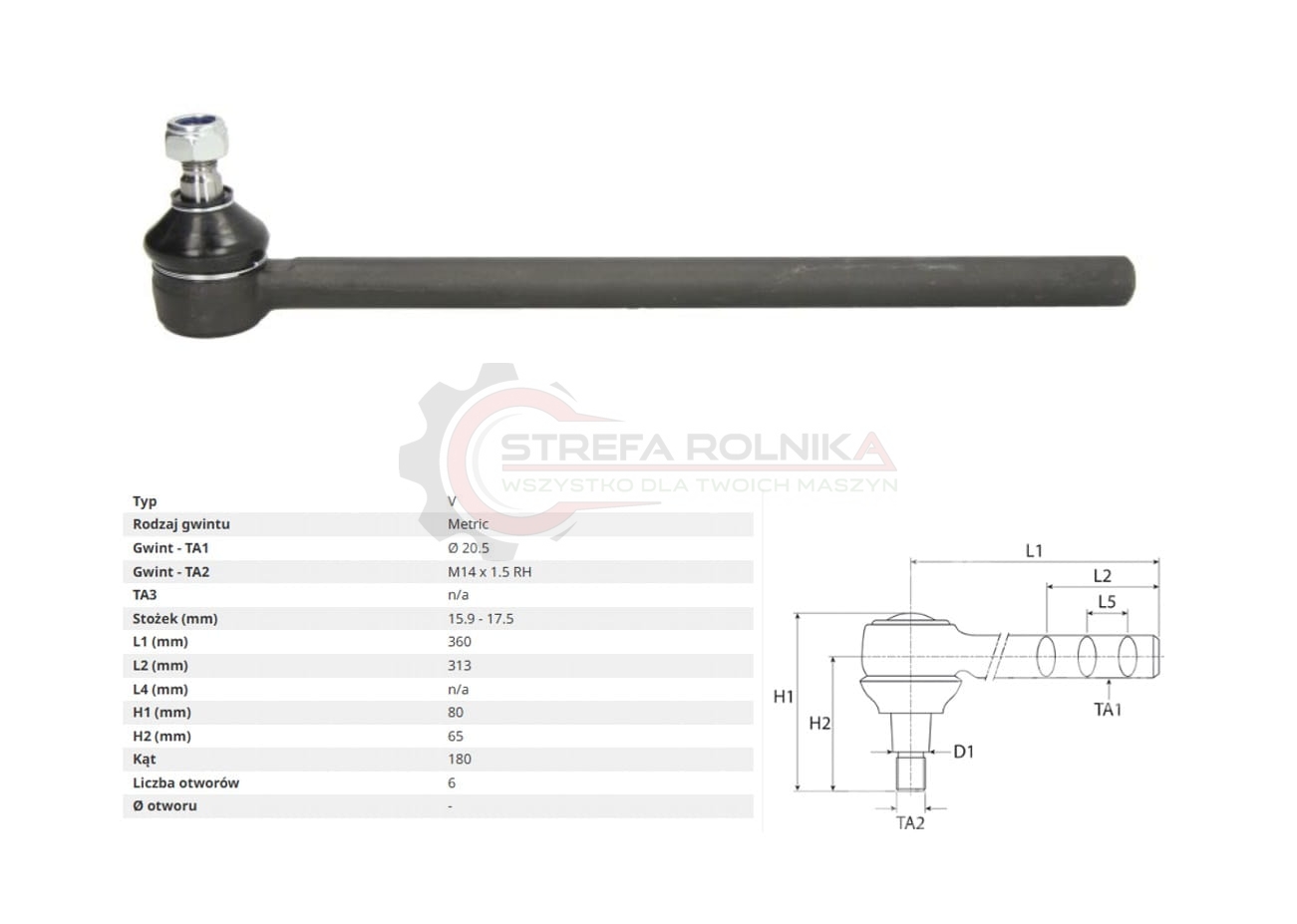 KOŃCÓWKA DRĄŻKA CASE 3210, 3220, 3230, 4210, 4220, 4230, 4240, 385, 485, 585, 685, 785, 885, 395, 495, 595, 695, 895, 995 1332805C2
