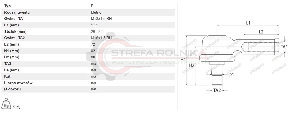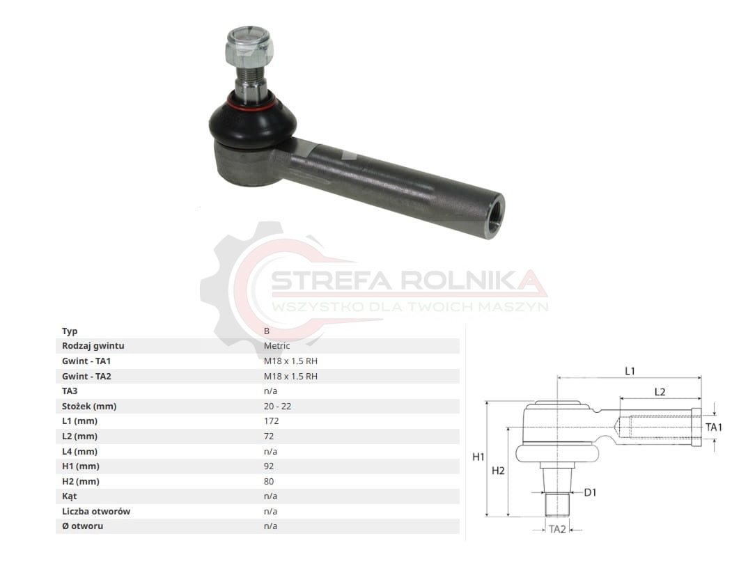KOŃCÓWKA DRĄŻKA CASE 3210, 3220, 3230, 4210, 4220, 4230, 4240, 395, 495, 595, 695, 795, 895, 995, 238, 258, 268, 288, C100 090006461, 137048A1, 1537612C1, 38702638, 8012103539000, 81878543, 931764, A851202, ER048989