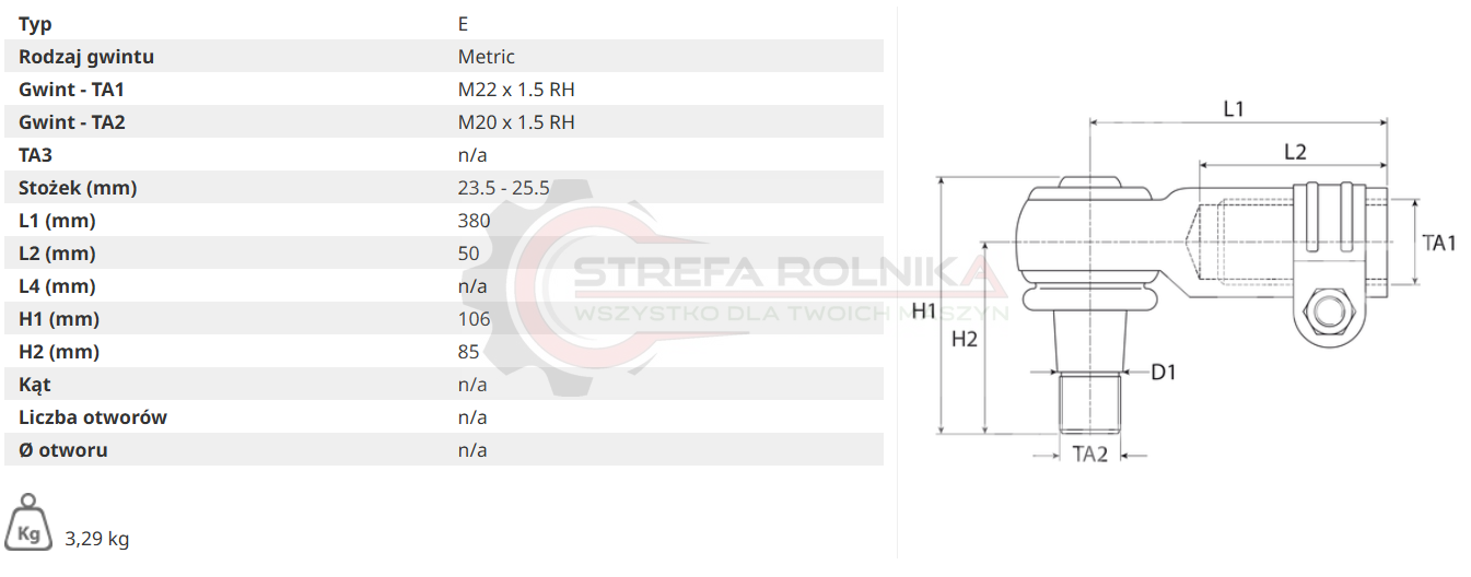 KOŃCÓWKA DRĄŻKA LEWA CASE 1056 (APL345), 1056XL (APL345), 956 (APL345), 956XL (APL345) 1968469C1
