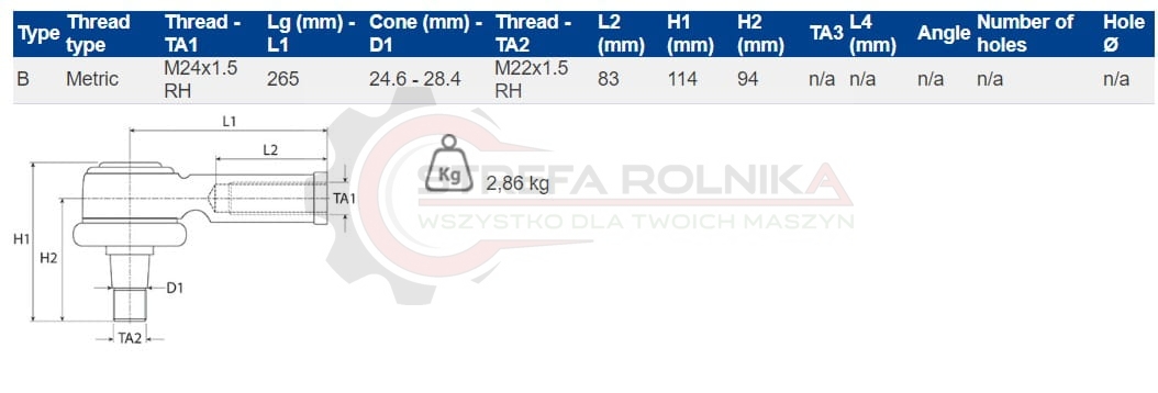 KOŃCÓWKA DRĄŻKA LEWA JOHN DEERE 0501209474 , 0501210954 , 501209474 , 501210954 , AL110887 , AL116740 , AL168708 , AL168710 , AL80534