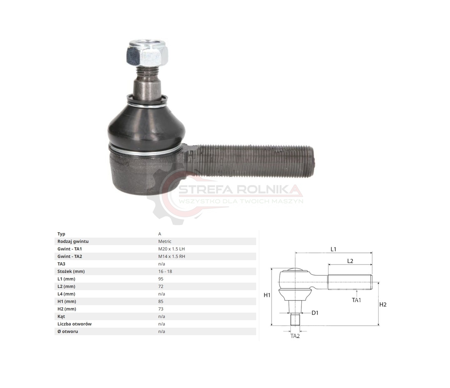 KOŃCÓWKA DRĄŻKA LEWA RENAULT 50-12V, 55-12V, 70-12V, 80-12V, Dionis 110, Dionis 120, Dionis 130, Dionis 140, Fructus 110 (090007050, 6000100832, 633315, 83930110, A107634, A851233, ER107634, K261841, RE61848,)