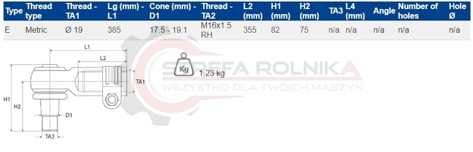 KOŃCÓWKA DRĄŻKA MASSEY FERGUSON 165, 168, 175, 175S, 178, 185, 188, 265, 275, 285, 290, 265, 565, 575, 590, 675, 690, 50, 50B, 50B Mk11, 886797M91, 963922M1