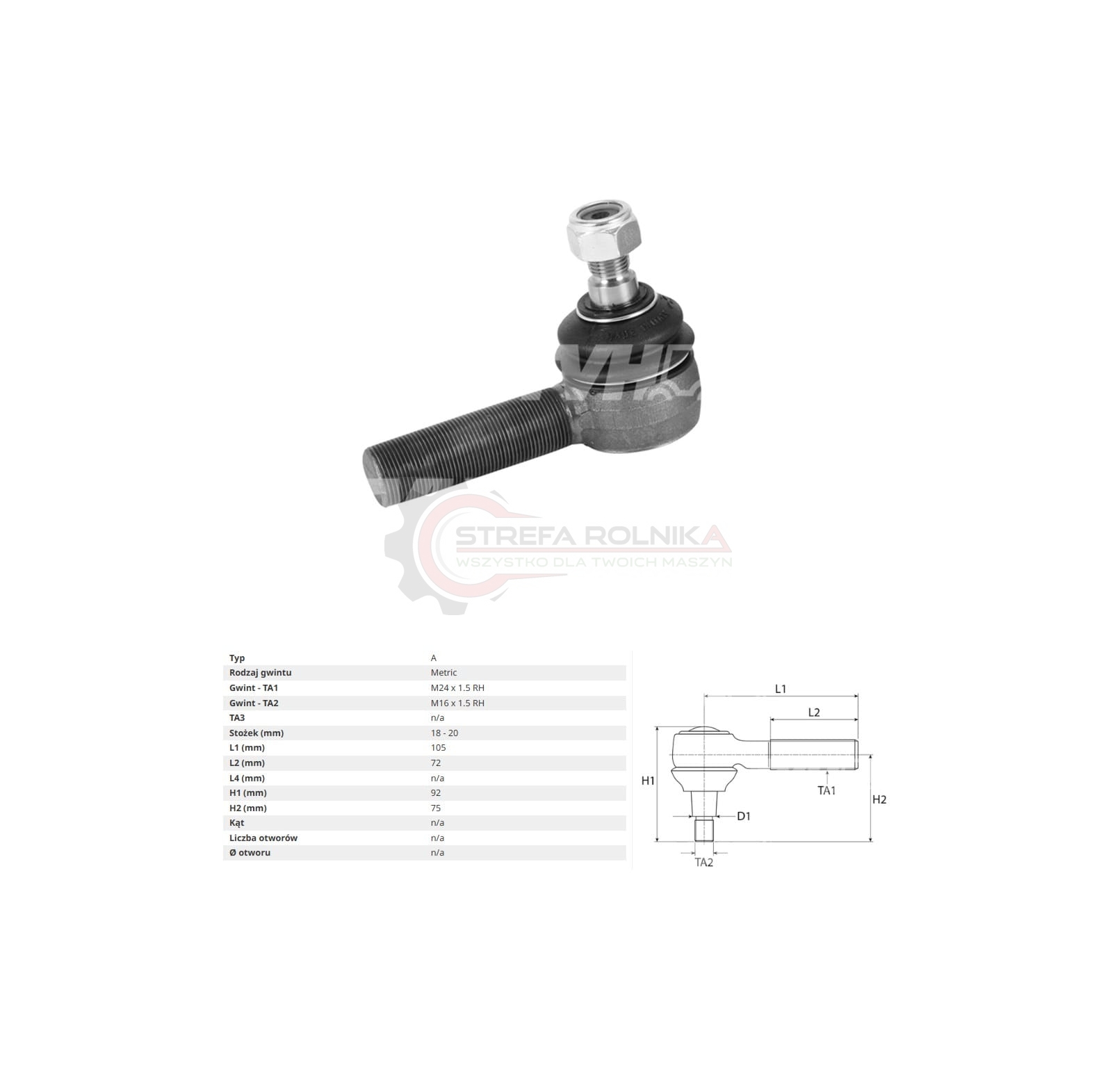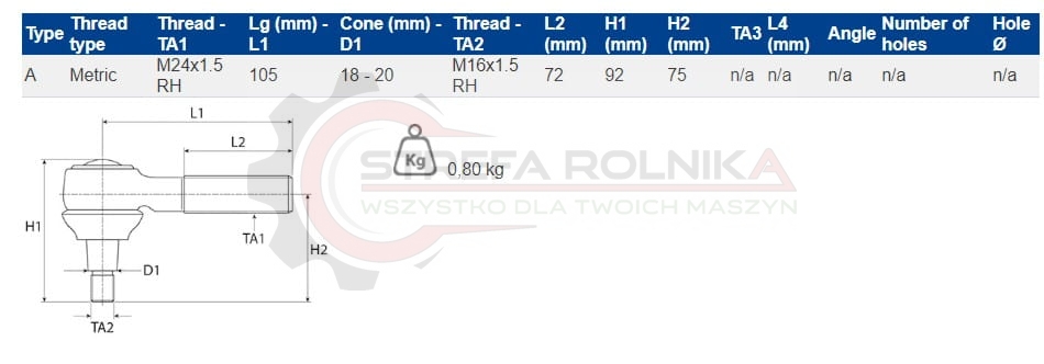 KOŃCÓWKA DRĄŻKA MASSEY FERGUSON 165, 168, 185, 188, 1004, 1014, 1104, 1134, 275, 285, 298, 2620, 2625, 2640, 2645, 2680, 350, 360, 365, 375, 390, 398, 1824403M91, 3426773M3