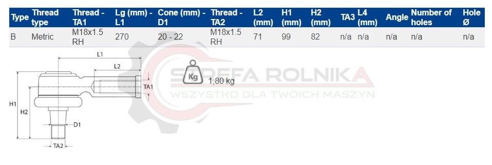 KOŃCÓWKA DRĄŻKA MASSEY FERGUSON 4225, 4225HV, 4235, 4235HV, 4240, 4325, 4325HV, 4335, 4335HV, 3428818M2