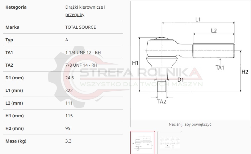 KOŃCÓWKA DRĄŻKA PRAWA CASE 7110, 7120, 7130, 7140, 7150, 7210, 7220, 7230, 7240, 7250, 8910, 8920, 8930, 8940, 8950 128604A1