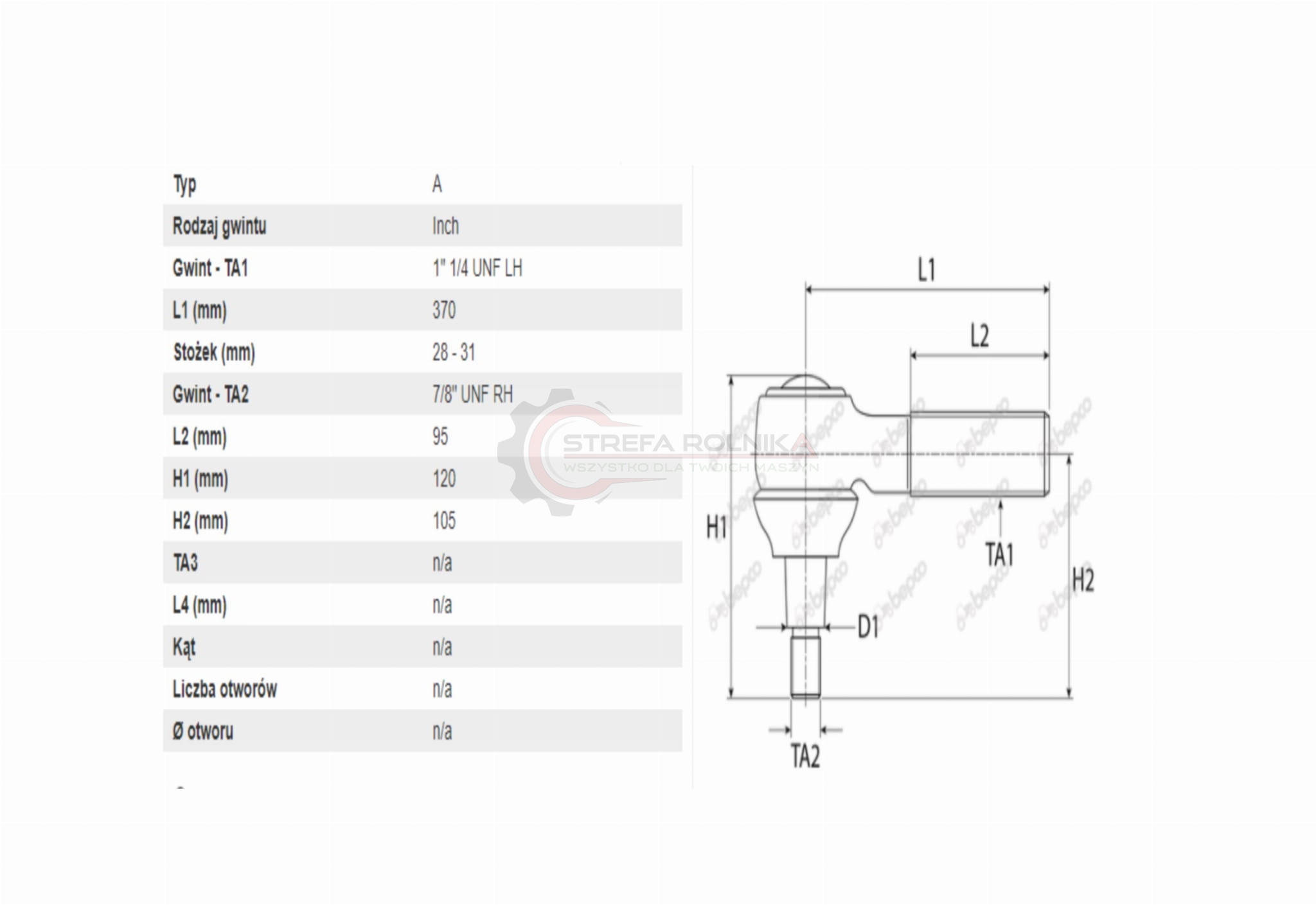 KOŃCÓWKA DRĄŻKA lewa JOHN DEERE 6225, 6230, 6230PR, 8100, 8200, 8400, 8110, 8210, 8310, 8410, 8120, 8220, 8320, 8420, 8520, 8130, 8330, 8430 RE173541