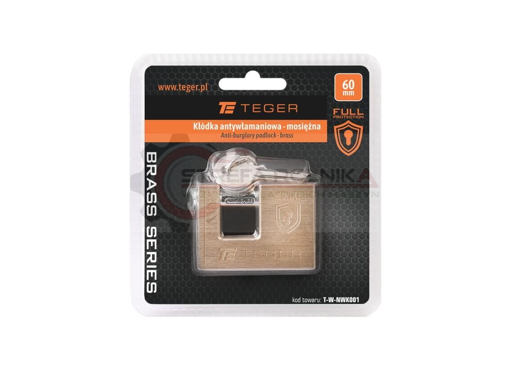 Kłódka antywłamaniowa - mosiężna / trzpieniowa 60mm - 3 klucze / TEGER