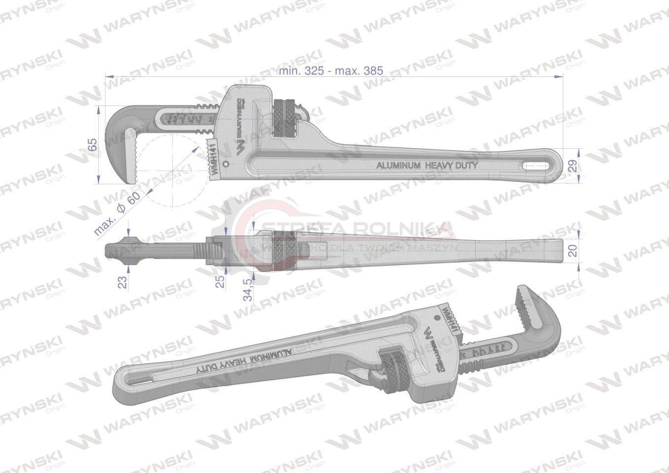 Klucz do rur typ amerykański 14" uchwyt aluminium wzmocniony szczęki CrMo max średnica Waryński