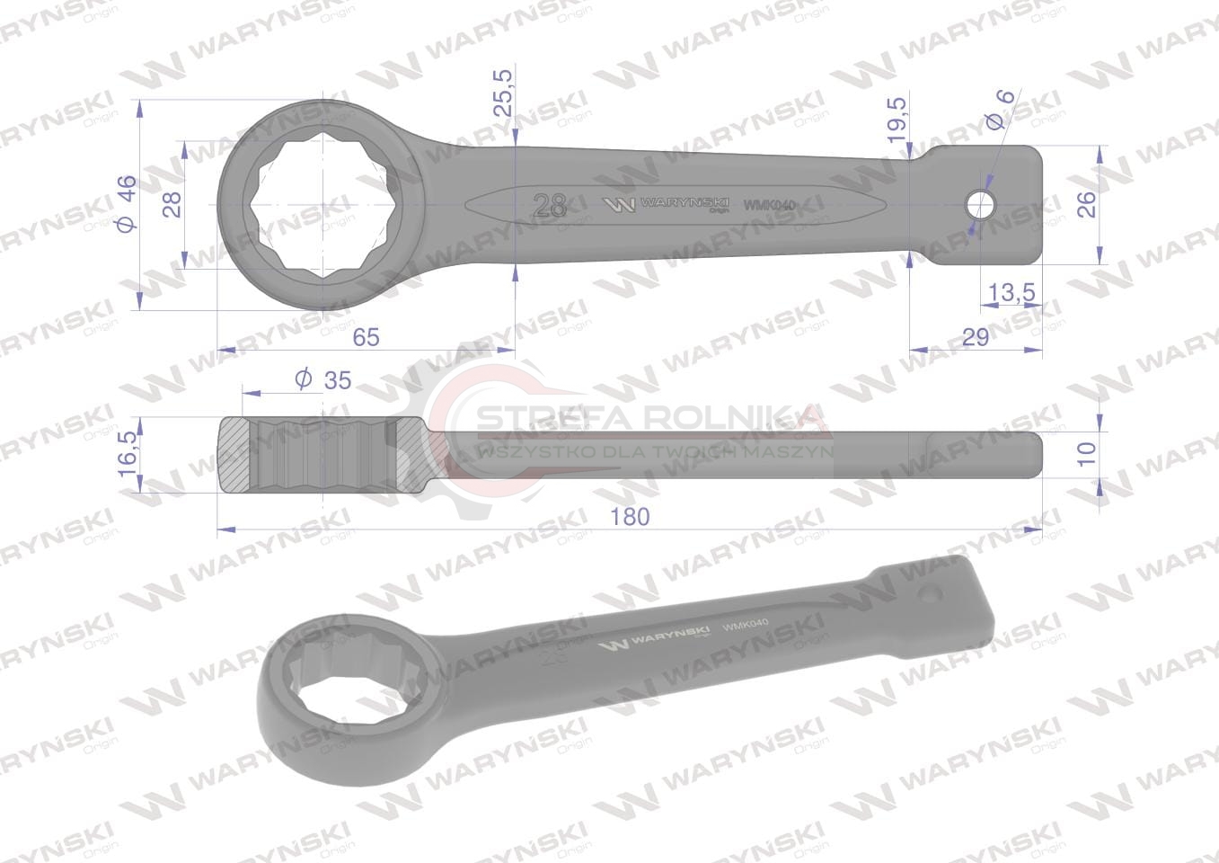Klucz oczkowy do pobijania 28 mm Waryński