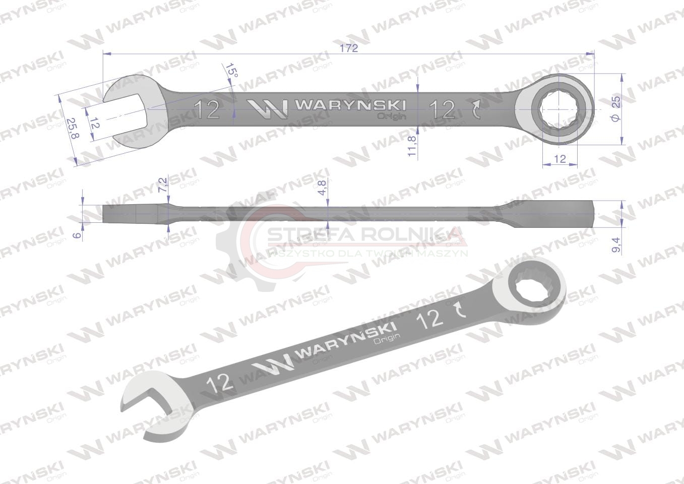 Klucz płasko-oczkowy 12 mm z grzechotką 72 zęby Waryński