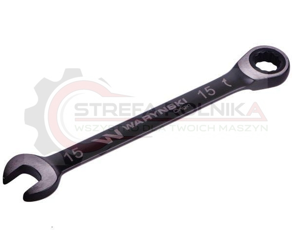Klucz płasko-oczkowy 15 mm z grzechotką 72 zęby Waryński