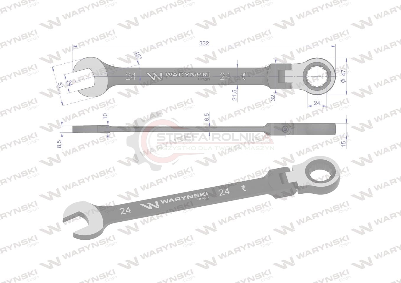 Klucz płasko-oczkowy 24 mm z grzechotką 72 zęby i przegubem Waryński