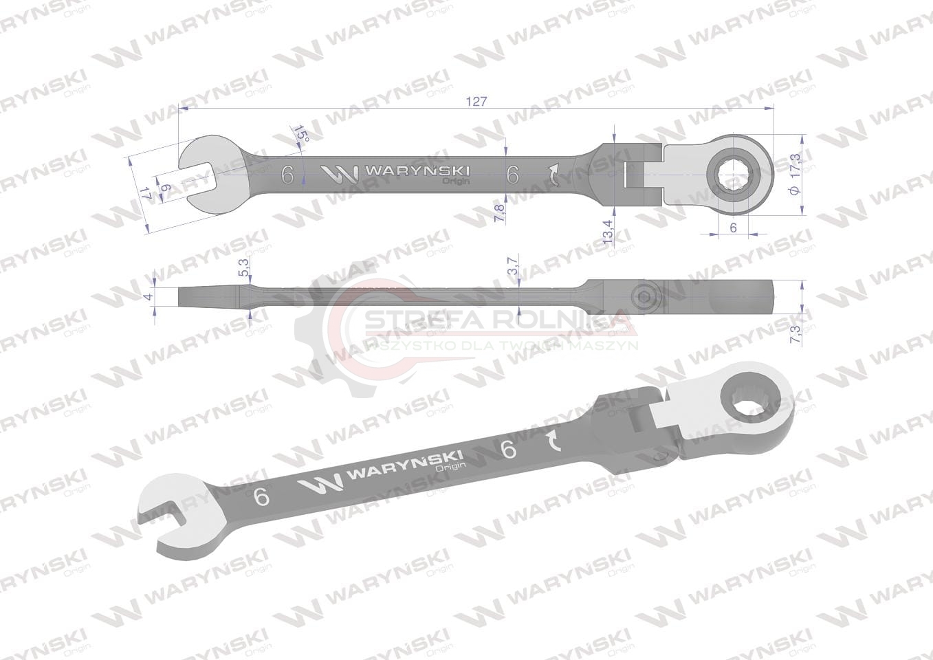 Klucz płasko-oczkowy 6 mm z grzechotką 72 zęby i przegubem Waryński