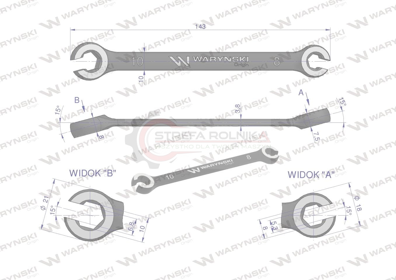 Klucz płasko-oczkowy otwarty 8 X 10 mm Waryński