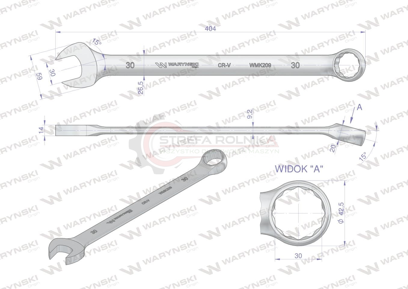 Klucz płaskooczkowy extra długi 30mm dł 404mm standard ASME B107.9M Waryński