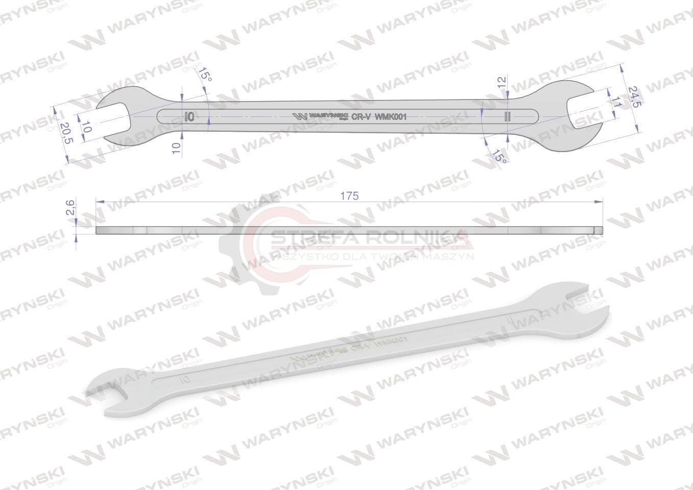 Klucz otwarty ultra płaski 10 x 11 mm, CrV Waryński