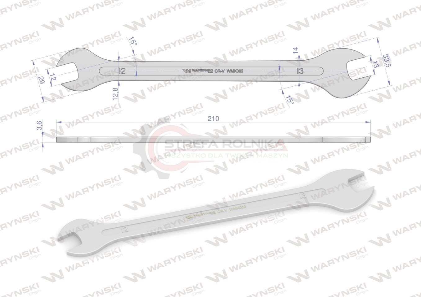 Klucz ultra płaski 12 x 13 mm, CrV Waryński
