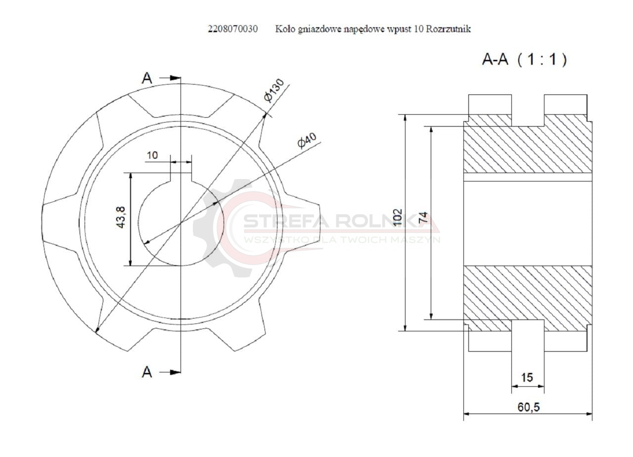 Koło gniazdowe napędowe wpust 10 Rozrzutnik