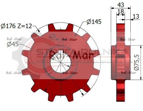 Koło łańcuchowe podajnika pochyłego Z-12 Bizon
