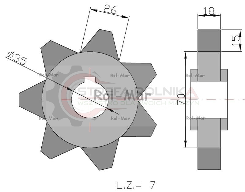 Koło przenośnika ziarnowego (elewatora) dolne Z-7 fi-35 674406.1 Claas