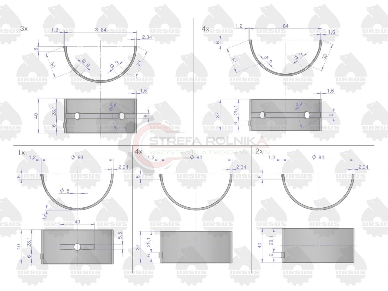 Komplet panewek głównych N-0.75 (III szlif) C-385 6-cyl. ORYGINAŁ URSUS