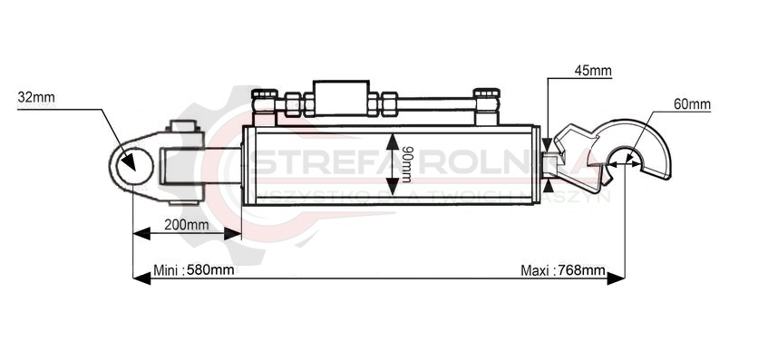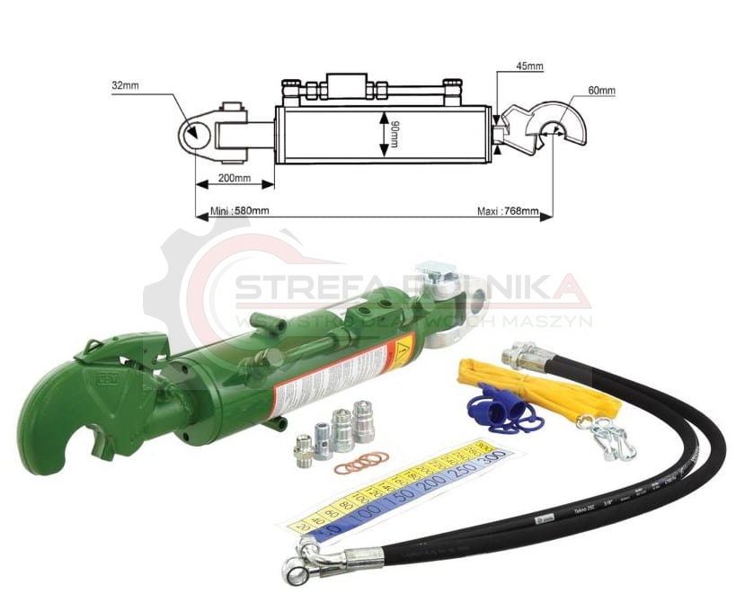 ŁĄCZNIK HYDRAULICZNY ŚRUBA CIĘGŁO HYDRAULICZNE JOHN DEERE 6830 6930 6150M 6170M 6150R 6170R 7430 7530 (Kat.3/3) PRZEBUG i CBM Q.R. HAK