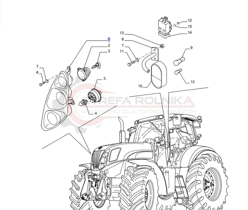 LAMPA REFLEKTOR PRAWY NEW HOLLAND T6070, T6080, T6090, T7.170, T7.185, T7.200 T7.210, T7.220, T7.230, T7.235, T7.245, T7.250 T7.260, T7.270, T7030, T7040, T7050, T7060 T7070, T8 82037491