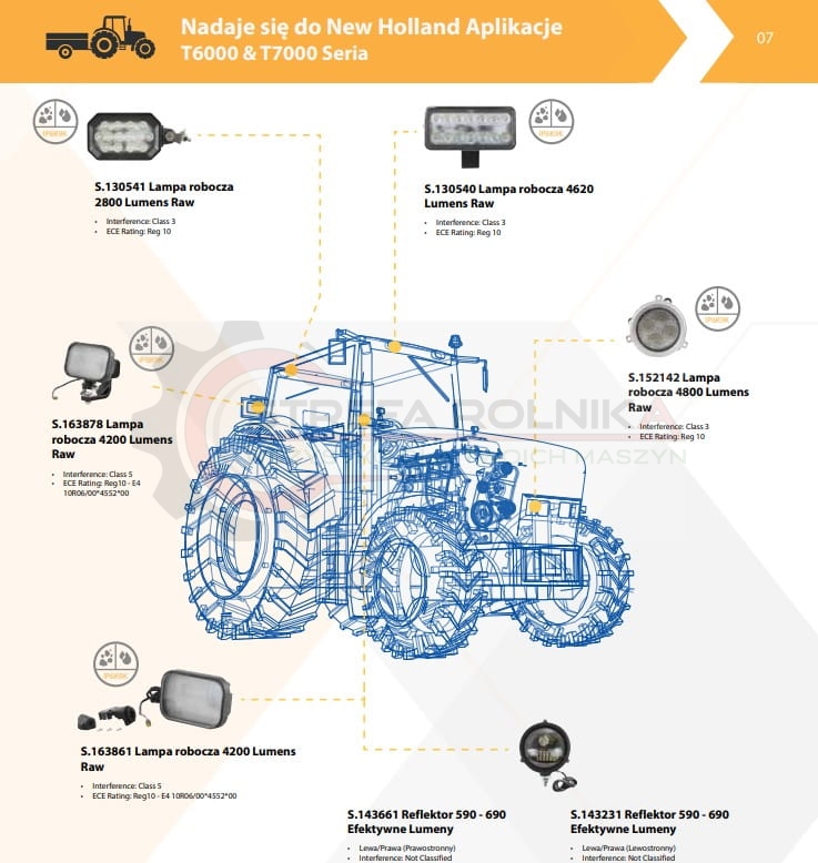 LAMPA ROBOCZA LED 4800lm W LAMPIE NEW HOLLAND TD5 T5030, T5040, T5050, T5060, T5070 T6050 T6030 T6070 T5 T6 T7 82035642, 87303941