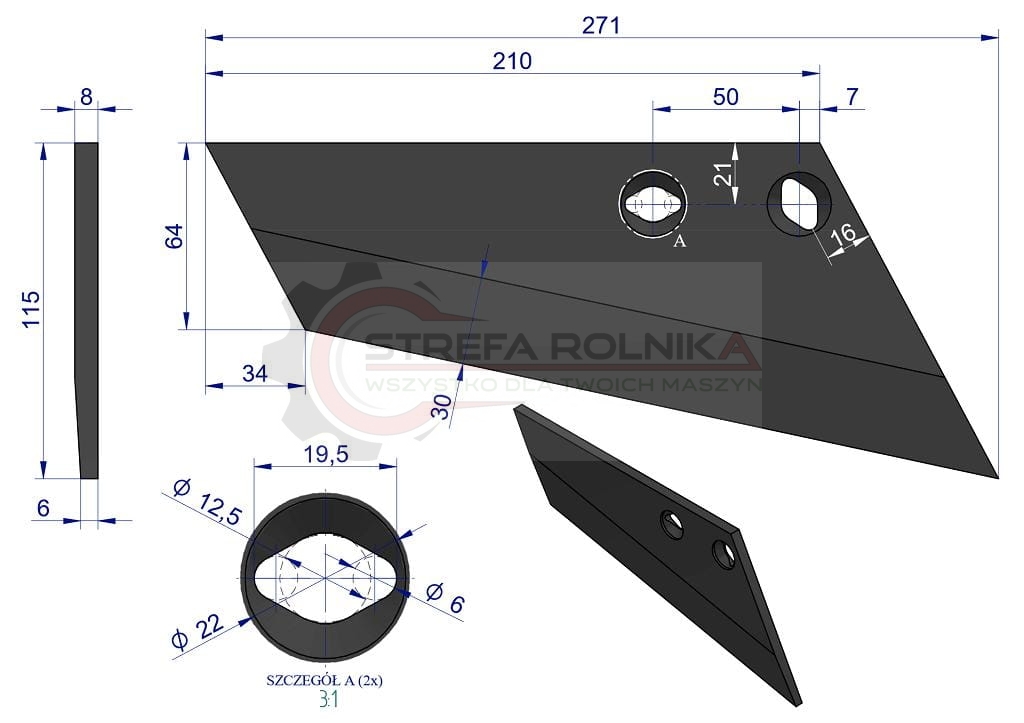Lemiesz agregatu podorywkowego prawy 260mm/2-otwory Gruber typ Brodnica/ Uniwersalne