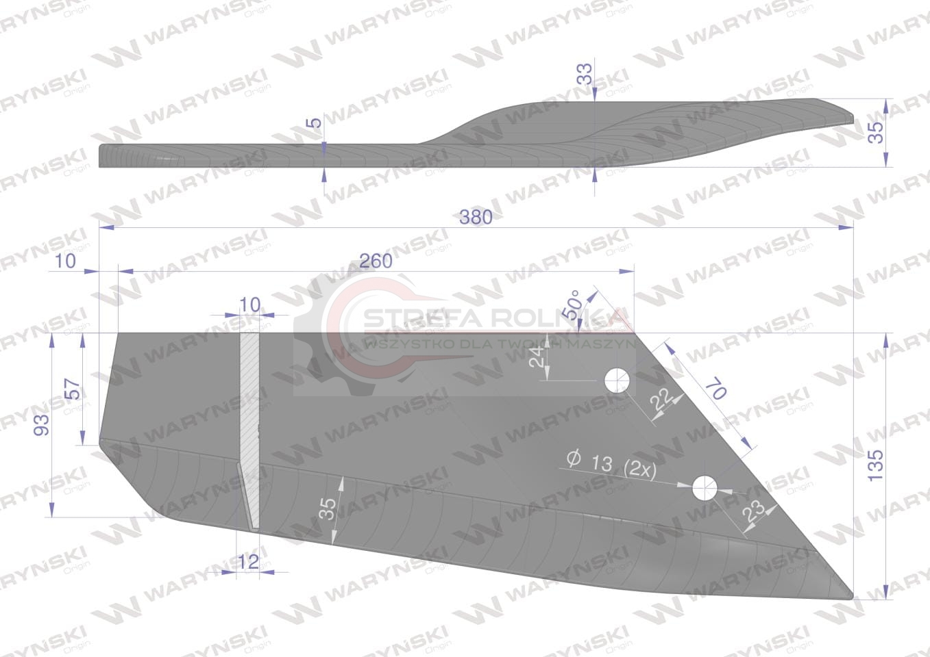 Lemiesz wygięty długi prawy zastosowanie Lemken Smaragd Napawane Waryński