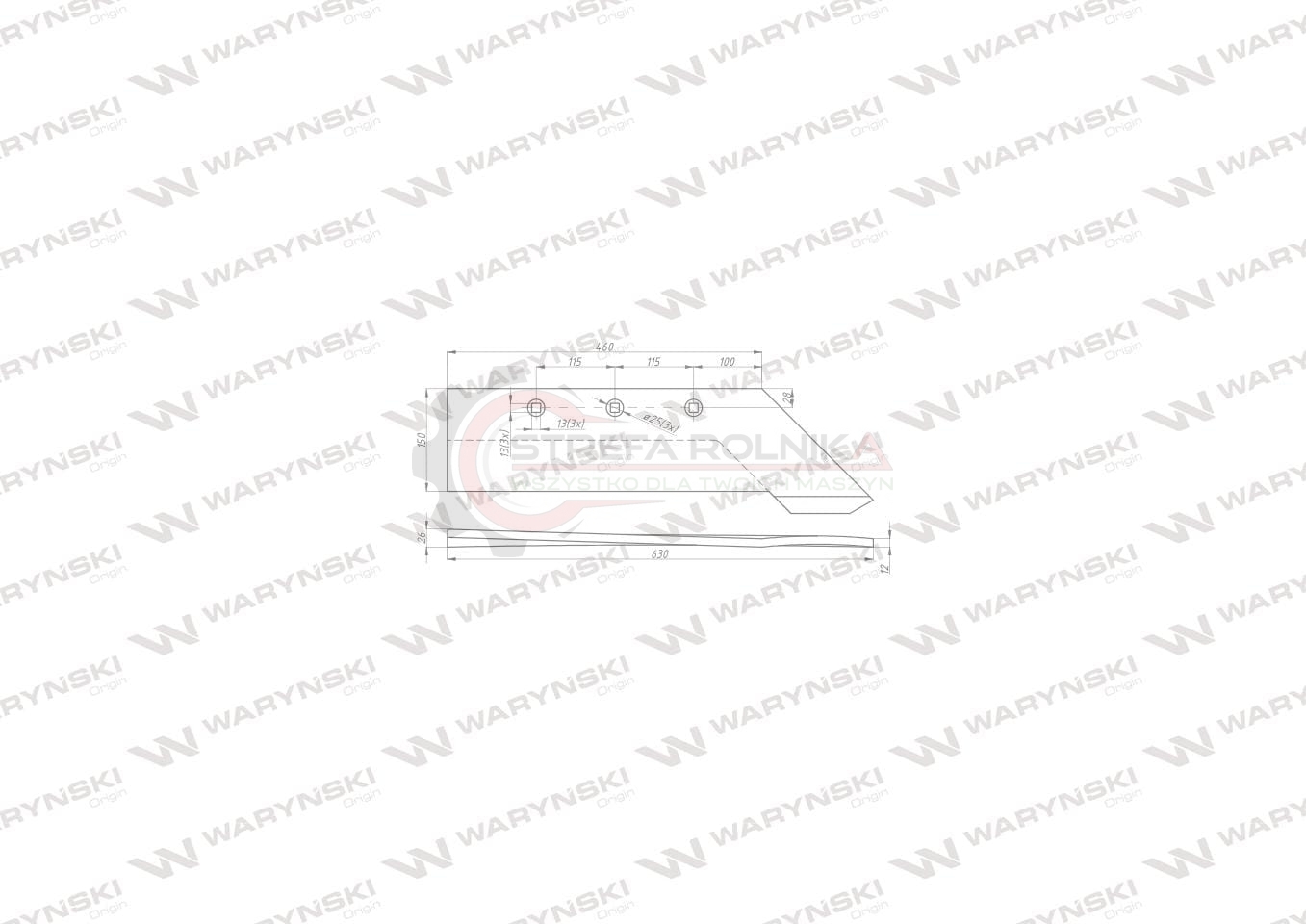 ŚRUBY WSPÓŁPRACUJĄCE:3 x W-608101235Lemiesz z dziobem zamiennik AS/0184 Atlas Unia Pług stal borowa WARYŃSKI Części robocze marki WARYŃSKI wykonane są z niezwykle wytrzymałej i odpornej na ścieranie stali borowej pochodzącej z europejskich hut. Każda, nawet najmniejsza dostawa, posiada dołączony certyfikat potwierdzający skład materiałowy. Stal borowa posiada właściwości szczególnie przydatne w zastosowaniach konstrukcyjnych wymagających dużej wytrzymałości. Połączenie wysokogatunkowej stali borowej, monitorowanego procesu obróbki cieplnej oraz skrupulatna kontrola jakości produktów WARYŃSKI to gwarancja wydłużonego okresu eksploatacji. Produkty WARYŃSKI to oszczędność kosztów związanych z powolnym ścieraniem i zużyciem części roboczych. W trosce o trwałość naszych produktów oraz zadowolenie klientów proces produkcji lemieszy WARYŃSKI nie zakłada operacji spawania. Wszystkie rodzaje otworów są wykonane w specjalny sposób minimalizujący naprężenia oraz zmniejszający ryzyko pęknięć.