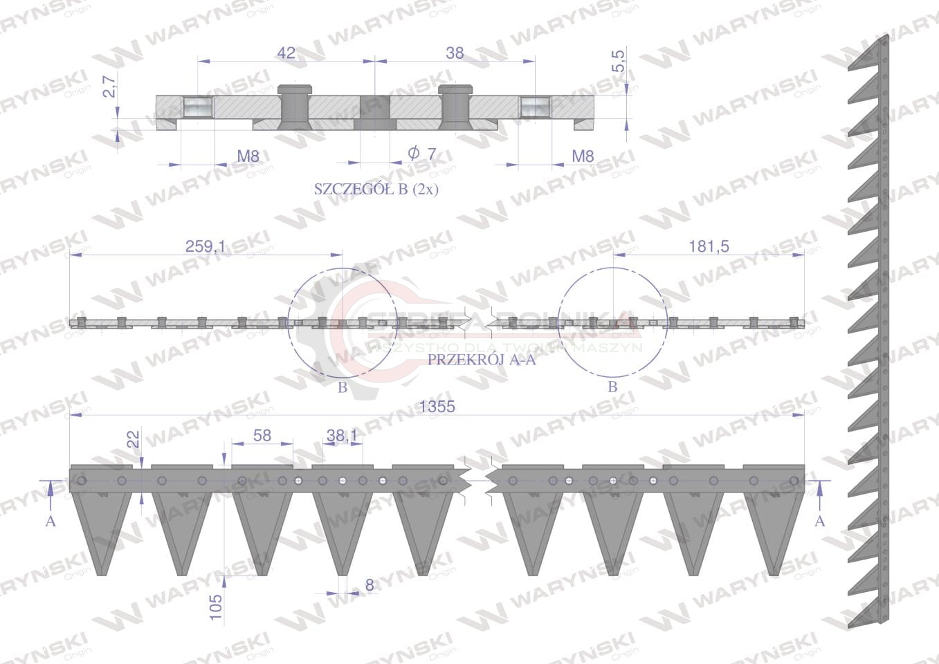 Listwa nożowa kosy bocznej do rzepaku Waryński