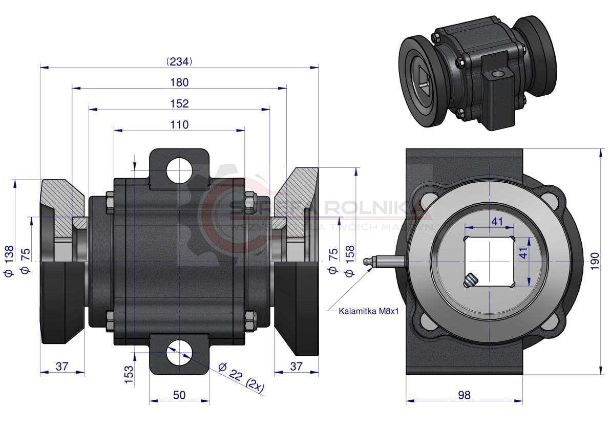 Łożysko kompletne brony talerzowej na wał czworokątny 40x40 Bru. Kverneland. Rau