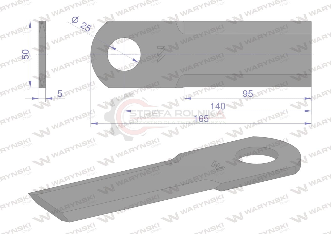 Nóż, obrotowy rozdrabniacz słomy sieczkarnia gładki 165x50x5mm otwór 25 zastosowanie DS175 WARYŃSKI, Waryński