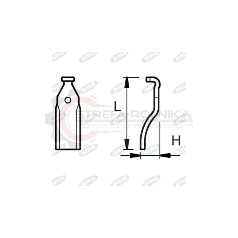 Nóż do glebogryzarki prawy RH L205 H=45, otwór 16,5