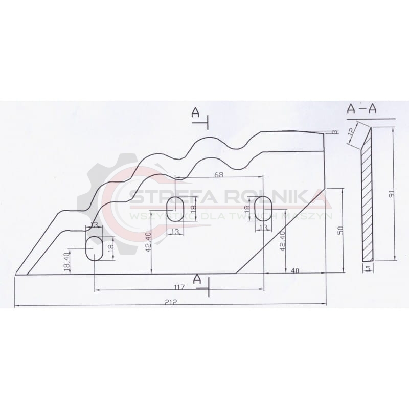 Nóż do paszowozu SGARIBOLDI CL 04.008 lewy 18x13x5– zamiennik