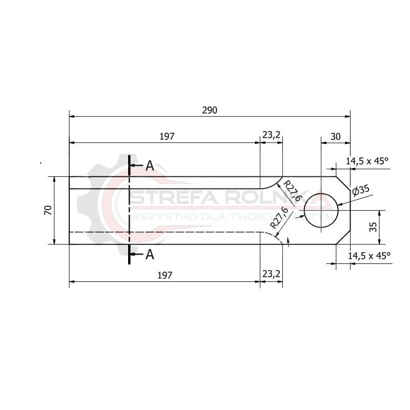Nóż do przystawki do kukurydzy 290x70x6, otwór fi 35 mm, wzmacniany -zamiennik- Olimac: DR12300