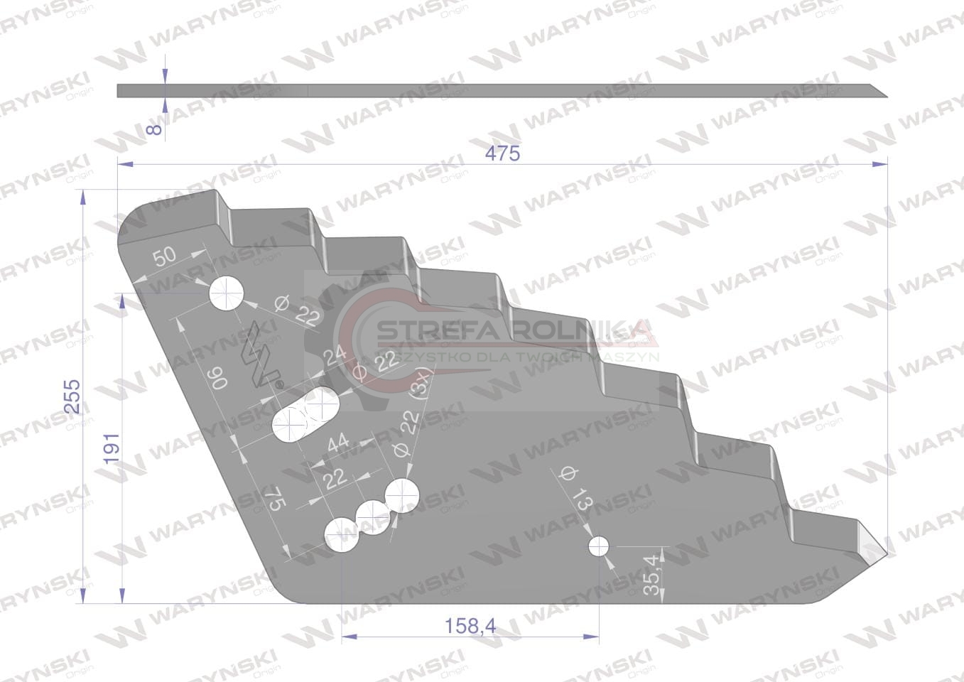 Noże do Wozu Paszowego Waryński. Wysokiej jakości noże do paszowozów z hartowanym ostrzem. Wykonane ze starannie dobranego gatunku stali wysokowęglowej Ostrza poddane obróbce cieplnej osiągają wysoką twardość - 55HRC Noże marki Waryński gwarantują dużą dokładność cięcia przez długi okres eksploatacji.
