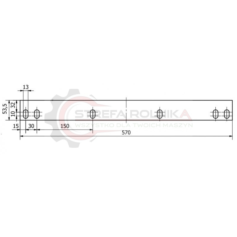 Nóż rotora do przystawki do kukurydzy 570x53x5, otwory fasolka 23x13 mm wzmocniony – zamiennik Olimac: DR11030