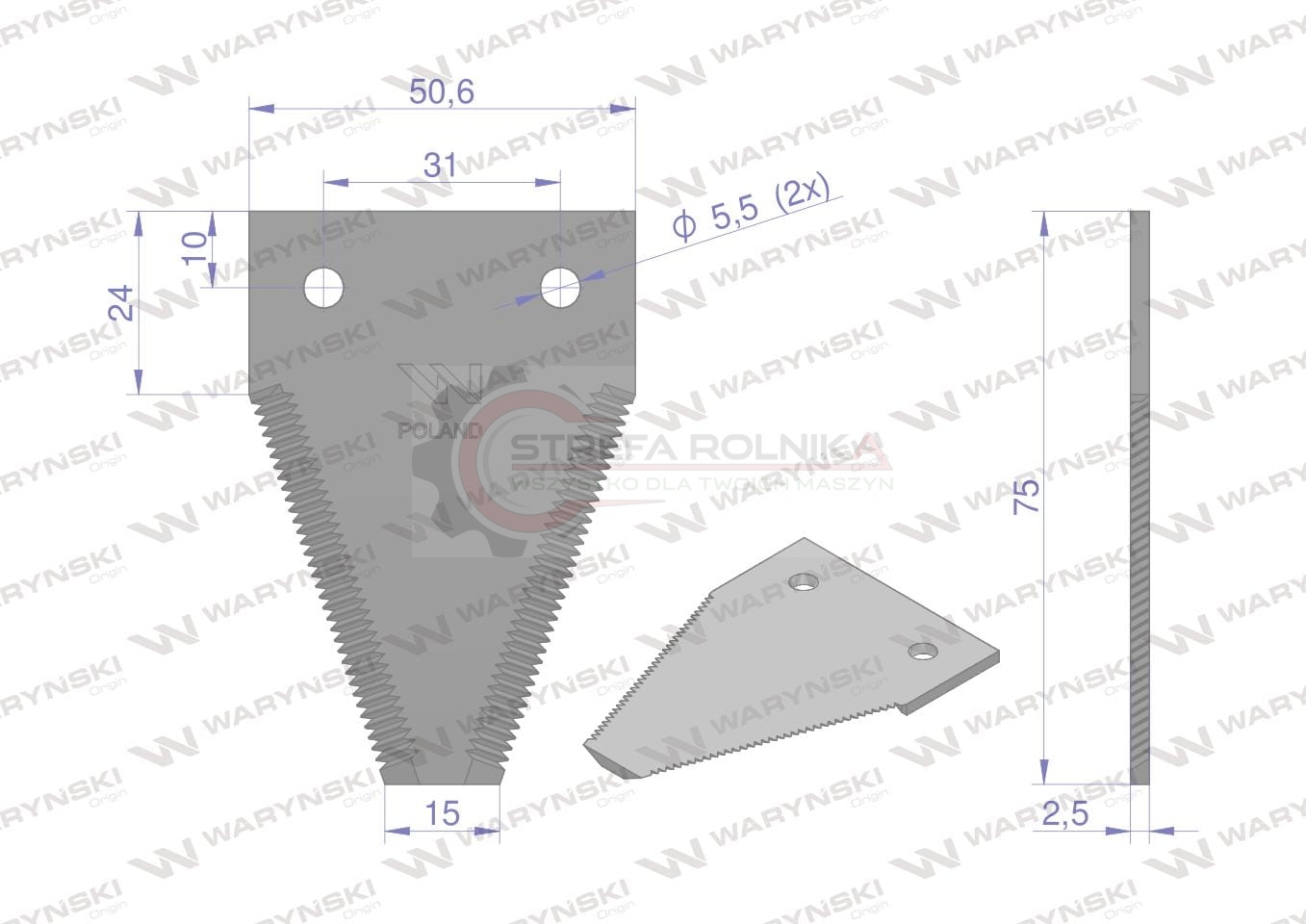Nóż żniwny ostrza ząbkowane listwa do kosiarek czołowych, listwy boczne do rzepaku WARYŃSKI ( sprzedawane po 30 )