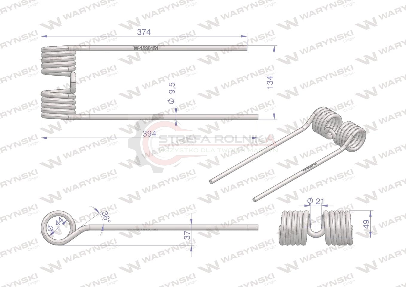 Palec przetrząsarka lewy zastosowanie Krone WARYŃSKI Palce sprężyste WARYŃSKI Zaprojektowane zostały w programie 3D łącznie z symulacją naprężeń metodą elementów skończonych. Powtarzalność zapewnia im wbudowana w proces wytwarzania kontrola jakości. Wykonane są ze stali sprężynowej obrobionej cieplnie, która ma zastosowanie również w produkcji resorów i sprężyn spiralnych, talerzowych i pierścieniowych do pojazdów mechanicznych pracujących przy największych obciążeniach. Ich właściwości pozwalają na optymalny przepływ transportowanej masy. Malowane są proszkowo co zapewnia im zwiększoną odporność na korozję i ścieranie