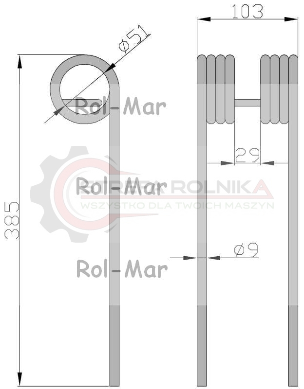 Palec przetrząsarko-zgrabiarka karuzelowa Kuhn GF440M/P 9/50/100/395 58561900 ( sprzedawane po 5 )