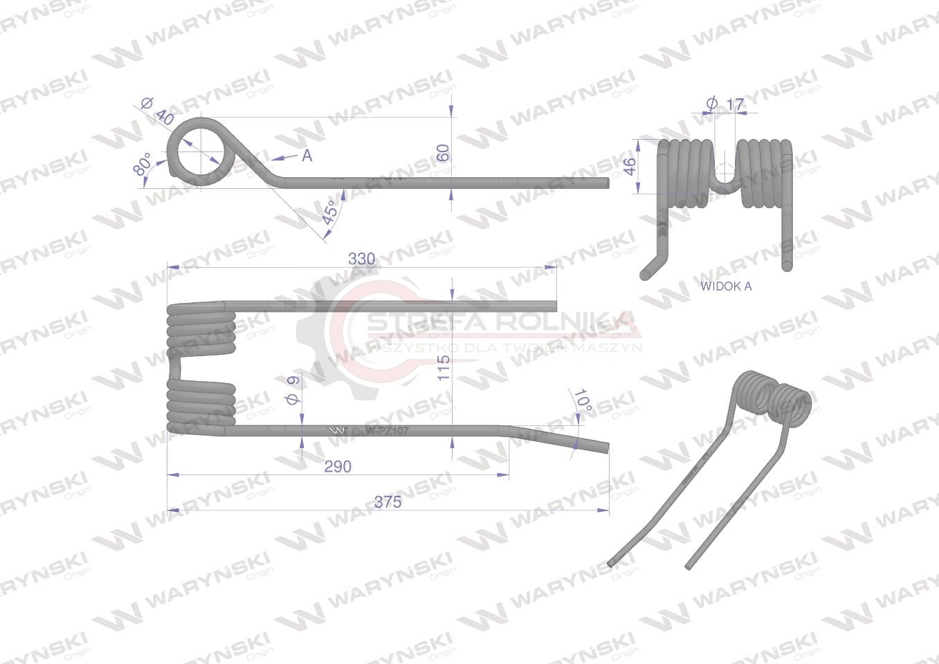 Palec przetrząsarko-zgrabiarki zastosowanie PZ Zweeger Vicon Mesko Waryński PZ-107 5275130020