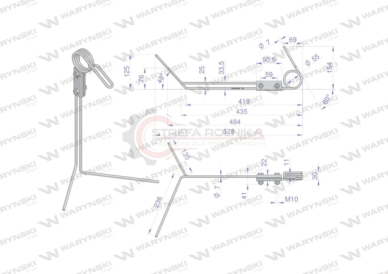 Palec zagarniający podwójny kompletny siewnika Famarol S074 I 30741403002l WARYŃSKI