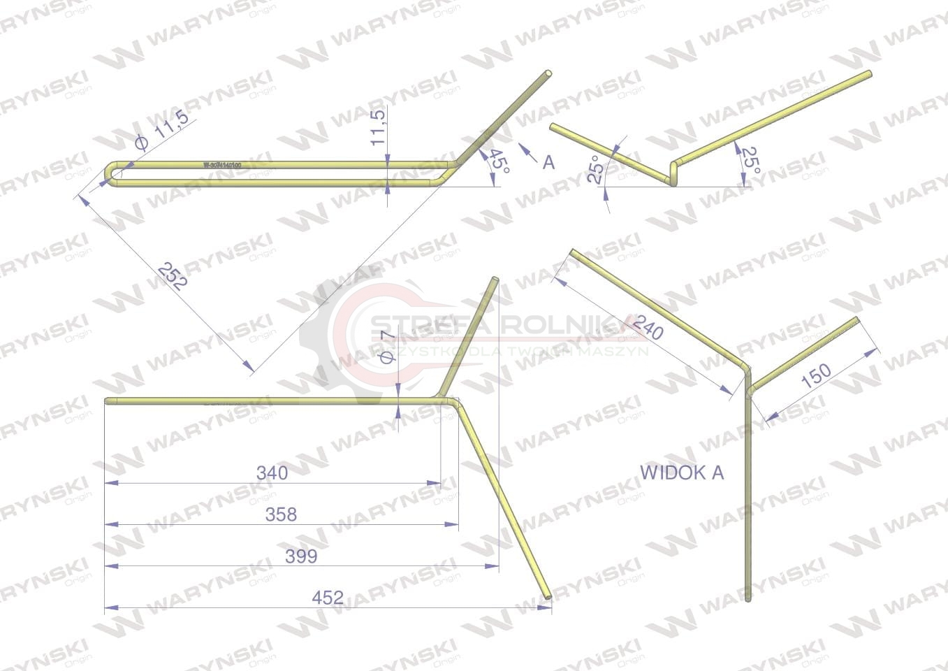 Palec zagarniający podwójny prawy zastosowanie Famarol S-074 30741403003l WARYŃSKI
